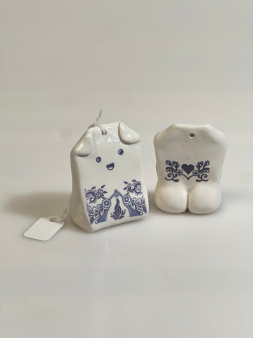 These original ceramic teabag sculptures are completely HANDMADE which gives each one their individual quirky characters .
